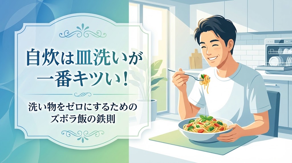 自炊を長く続けるコツは、料理を頑張ることではなく「片付けをサボる仕組み」を作ることです。